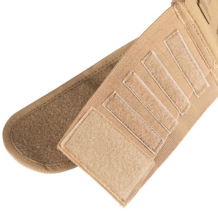 Normale gevechtsriemen worden meestal bevestigd met een dunne nylon riem met een metalen gesp / metalen clip. Deze dunne riem hangt echter meestal te los of te strak in de buikstreek. De metalen gesp snijdt vaak ongemakkelijk. Bij snelle bewegingen en sprints in het veld kan de Battle Belt ook wegglijden als deze niet stevig of correct is aangesloten op het Tactical Vest. - Alleen een gevechtsriem dragen is in dergelijke situaties soms bijna onmogelijk, omdat deze constant wegglijdt.