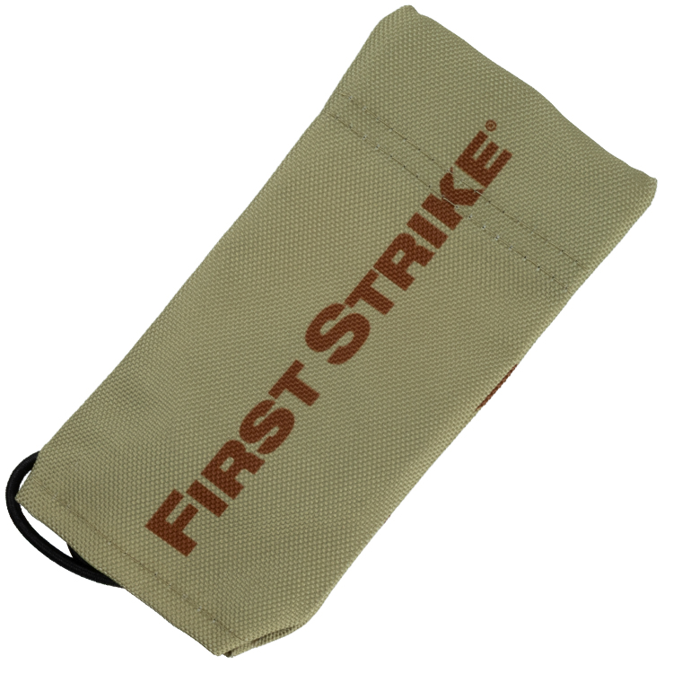 First Strike paintball hardloopsokken met logo-opschrift aan de ene kant en het First Strike-logo aan de andere kant.