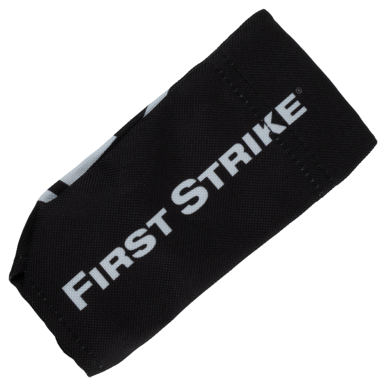 First Strike paintball hardloopsokken met logo-opschrift aan de ene kant en het First Strike-logo aan de andere kant.