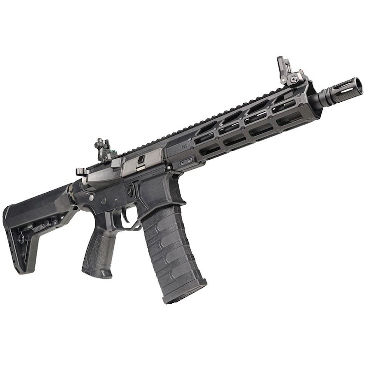 De body en de nieuwe M-Lok handguard zijn gemaakt van glasvezelversterkt polymeer, wat het gewicht verlaagt en tegelijkertijd een hoge duurzaamheid garandeert. De buitenloop en kolfbuis zijn van metaal, wat zorgt voor extra stevigheid. Ambidextreuze bedieningselementen, waaronder de magazijnontgrendeling, maken het wapen ideaal voor zowel rechts- als linkshandigen. Twee QD-slots en traditionele bevestigingspunten maken het bevestigen van draagriemen mogelijk.