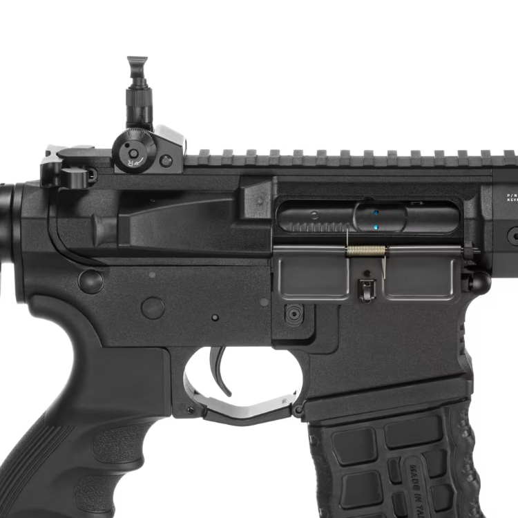 Nieuw bij dit wapen is de microschakelaar-trekkereenheid met MOSFET. Net als een ASCU biedt deze nu de voordelen van een schakeleenheid met een microschakelaar. De MOSFET, die zich buiten de gearbox bevindt, is geschikt voor LiPo-batterijen. Gebruik uitsluitend hoogwaardige batterijen die specifiek voor airsoft zijn ontworpen.